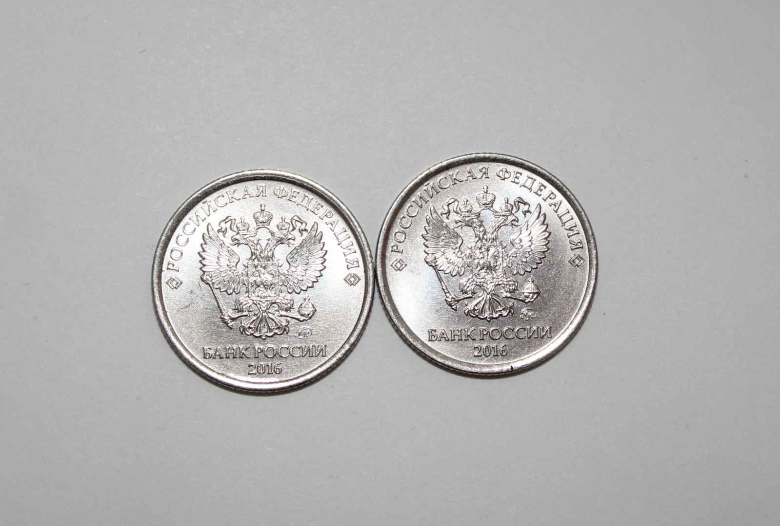 На той стороне, где находится надпись «1 РУБЛЬ», никаких новшеств нет. Однако изображение двуглавой птицы (орла) на обороте теперь чеканится совсем в ином виде – над каждой головой отныне находится по короне и еще одна сверху. Они украшены лентами.