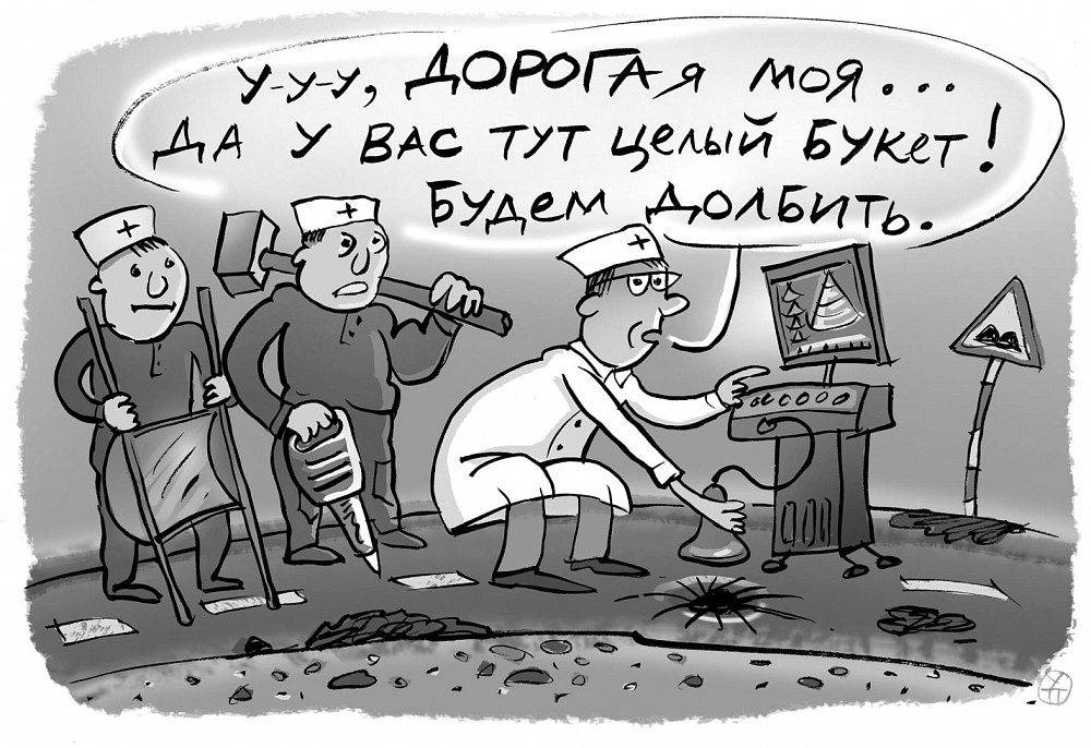 Умный прибор (скорее всего, умнее тех, кто строит у нас дороги) прикупило недавно министерство транспорта республики. Аппарат должен сканировать дорожное покрытие. Те, кто его держат, выносят вердикт. Варианта два: «все прекрасно» либо «есть нарушения». Во втором случае в асфальте выдолбят очередную дыру, чтобы проверить, не врет ли коварная машина. Если не врет, чиновники повыше начнут «лечить» чиновников пониже, а после, наверное, саму дорогу.