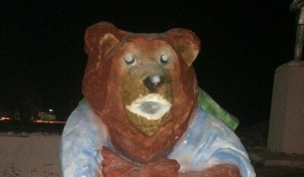 Вот такой новогодний подарок жителям поселка сделали спортсмены. Ледяной медведь одет в кимоно дзюдоиста.