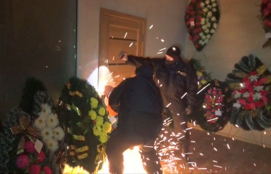 Чтобы попасть в него, нужно было пересечь зал с венками и гробами