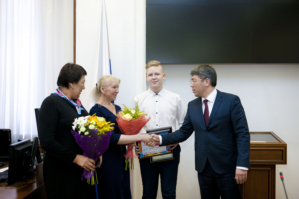 Благодарность правительства Бурятии и путевку в международный детский центр «Артек» врио главы республики вручил ученику улан-удэнской школы №17 Юрию Жарникову.
