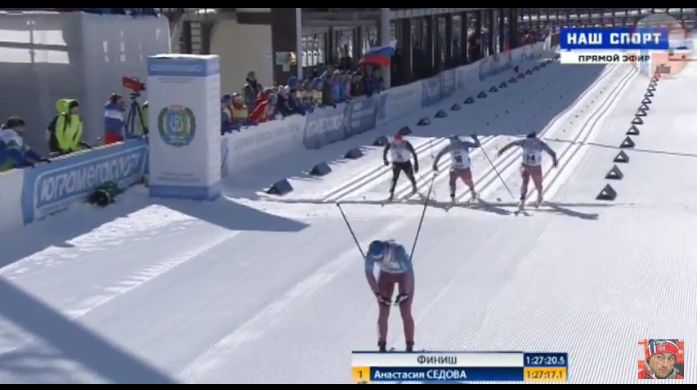 Напомним, чемпионат России по лыжным гонкам проходит в Ханты-Мансийске.
