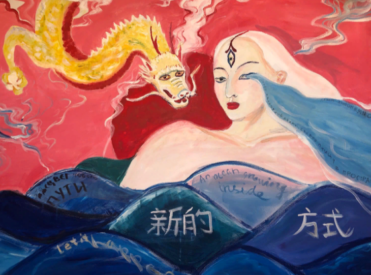 - Помню день, когда я сделала первый эскиз к этой работе, – 1 января 2020 года. Конечно, там было внесено множество изменений, в конечном итоге на всю работу у меня ушло полгода. Это картина про мою художественную вселенную, про мой отдельный мир, - рассказывает девушка.