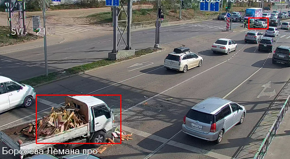 На кадрах видно, что грузовик мчал на всех парах и не успел притормозить, влетев в машину, остановившуюся на светофоре.