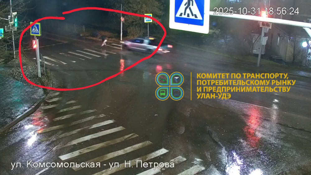 В Улан-Удэ накануне вечером на «зебре» сбили женщину. Она перебегала дорогу на «красный». Видео опубликовали в комитете по транспорту администрации города.