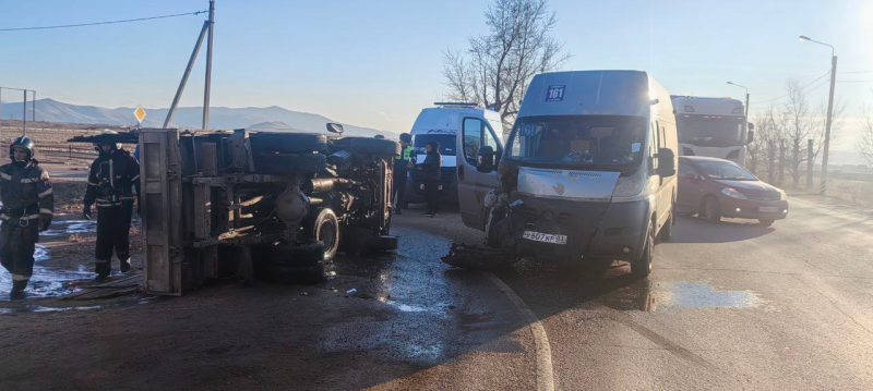 В пригороде Улан-Удэ столкнулись пассажирский автобус и грузовик