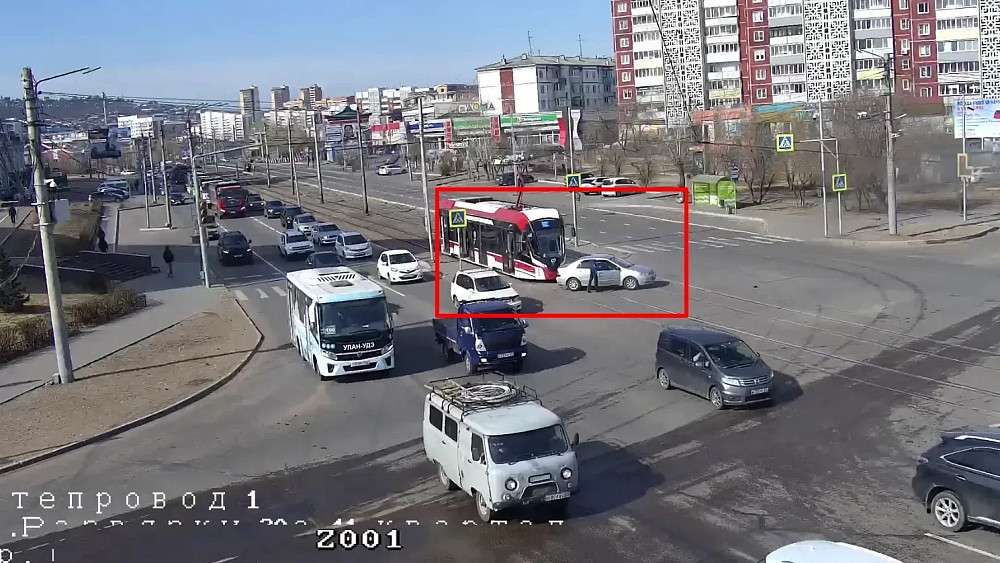 В Улан-Удэ на проспекте Строителей столкнулись трамвай и легковушка
