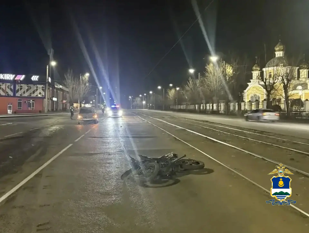 Сегодня, 26 апреля, около полуночи на улице Сахьяновой 15-летний водитель мотоцикла «Шармакс 250», не имеющий права управления транспортным средством, не поделили дорогу с автомобилем.