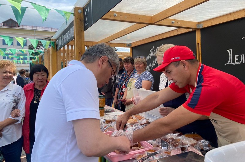 Это более 30 фермеров, личные подсобные хозяйства, а также члены территориальных общественных самоуправлений. В брендированных павильонах можно было приобрести мясную, рыбную, молочную продукцию, хлебобулочные изделия, продукты пчеловодства, свежие овощи и ягоды, консервацию, саженцы, сувениры и многое другое.