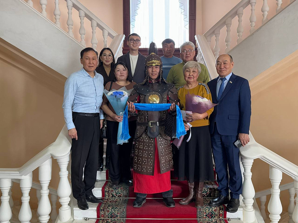 Облаченный в воинские доспехи «Зуут» времен Чингисхана, полученные на фестивале в качестве приза, студент Техникума строительства и городского хозяйства пришел в сопровождении родственников, депутата Закаменского райсовета Алексея Жамсуева и председателя Закаменского землячества Батора Санданова.
