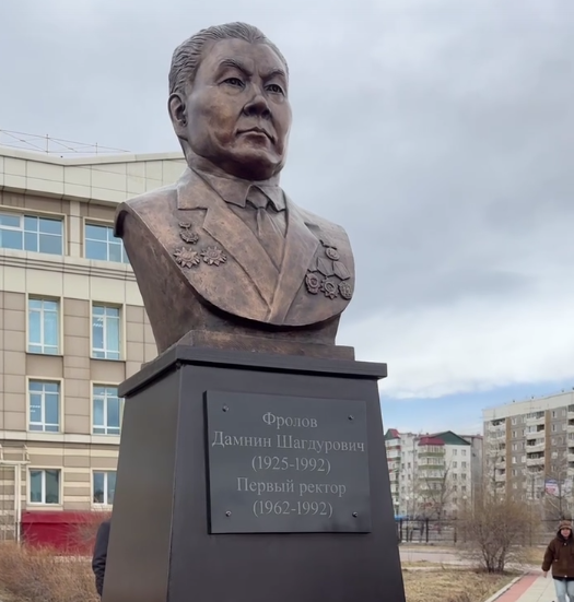Сегодня в кампусе ВСГУТУ в Улан-Удэ торжественно открыли бюст Дамнину Шагдуровичу Фролову - первому ректору вуза, ветерану войны, человеку, сыгравшему огромную роль в истории Бурятии.