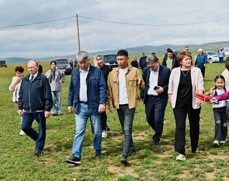 После посещения школы Алексей Цыденов заехал в крестьянско-фермерское хозяйство Амгалана Ринчинова. За восемь лет фермер построил базу, закупил племенной скот и технику, ввел в оборот заброшенные земли. Сегодня у агрария 300 голов крупнорогатого скота, есть овцы и лошади. Посевные площади составляют 371 гектар.