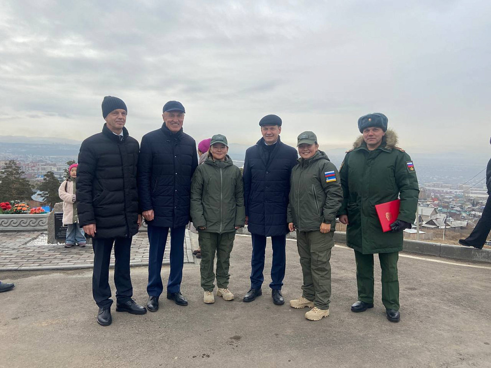 В начале церемонии воспитанницы центра «Воин» сестры-близняшки Дарина и Арьяна Дагбацыреновы подняли государственные флаги России и Бурятии.