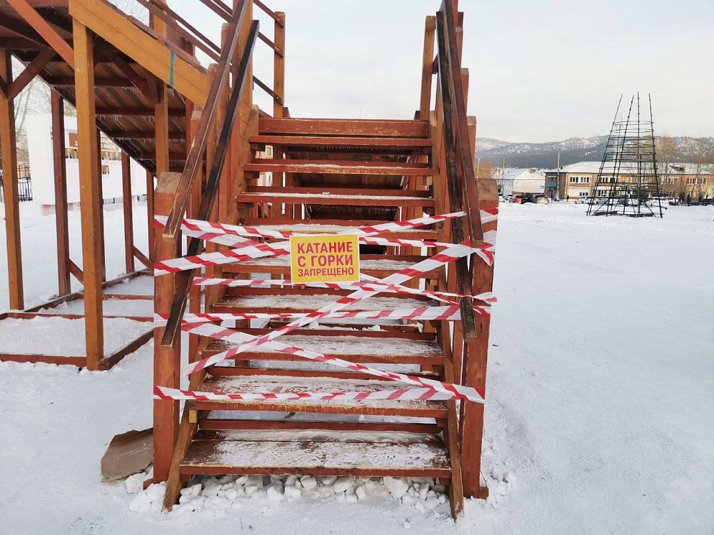 В Бурятии жителей поселка Заиграево пока не пускают на главную ледяную горку. «Катушку» временно закрыли.