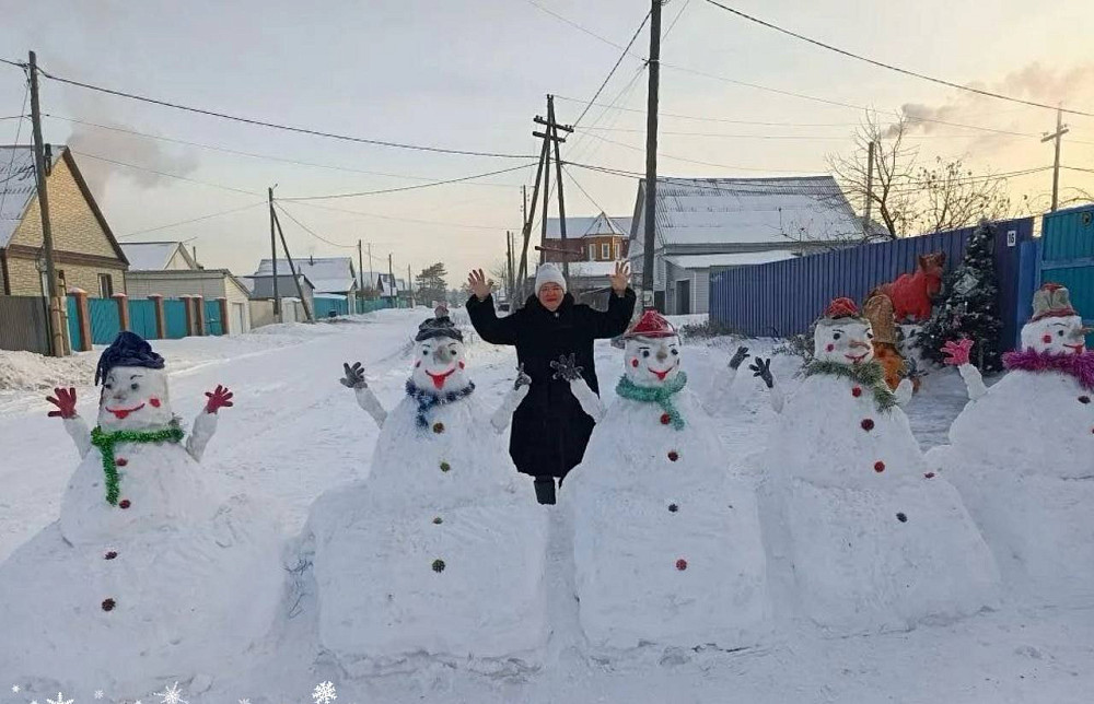 Жительница Заиграевского района Бурятии Валентина Пантелеева слепила в родном селе Онохой сразу нескольких снеговиков. Фото новогодних героев опубликовали в местной газете «Вперед».