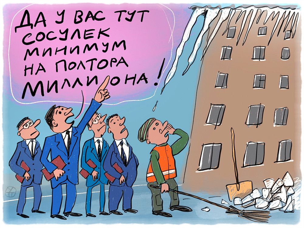 А теперь представьте: 110 тыс. рублей за каждую сосульку – это ведь можно за один день пополнить бюджет города так, что потом впору и весь асфальт во дворах переложить. Ну или выстелить пол в здании мэрии итальянским мрамором – тут уж как душа ляжет…