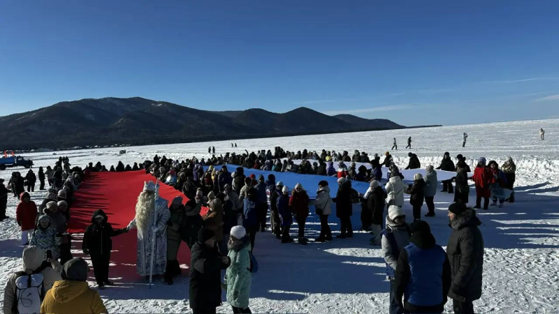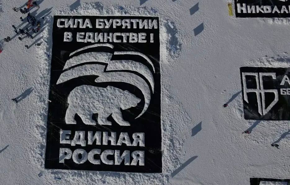 14 февраля в селе Максимиха прошел юбилейный пятый фестиваль «Снежная открытка». Команды со всей Бурятии создавали изображения прямо на льду Байкала. Вне конкурса шла сборная партии «Единая Россия» – она нарисовала символику партии, гигантского медведя.