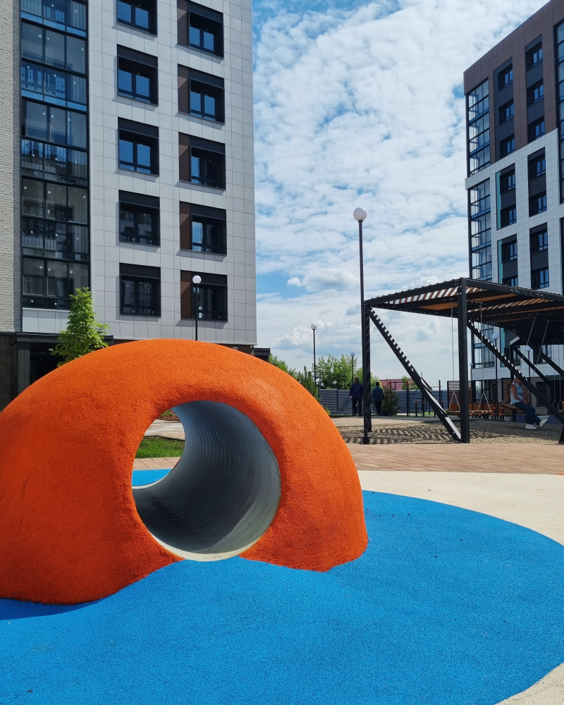 Двор ЖК закрыт от машин. Благодаря этому можно спокойно прогуливаться по благоустроенной и озелененной территории, не переживая за свою безопасность. Провести время в тишине и перезагрузиться можно будет в уютных местах отдыха, расположенных рядом с небольшим родником. Кроме того, во дворе предусмотрены детские и многофункциональные спортивные площадки.