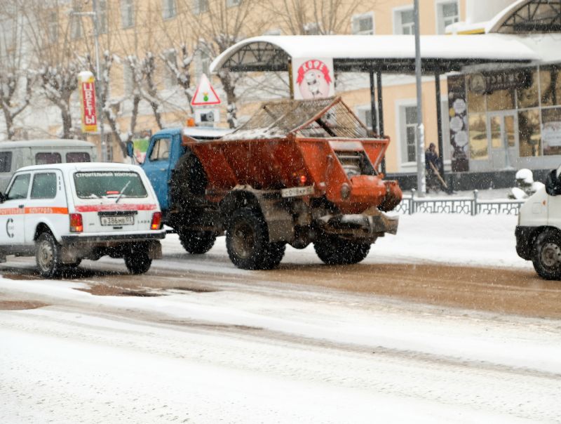 На «поле боя» выехал ярко-оранжевый КамАЗ КБУ. Задача перед водителем стояла благая и государственная: посыпать территорию песчаной смесью, чтобы гуляющий народ не скользил в ожидании блинов. Однако техника сработала с избыточным энтузиазмом: вместе с песком из вращающегося распределителя вылетели камни и крупный щебень. Этот импровизированный шрапнельный заряд в упор расстрелял припаркованный немецкий автомобиль.