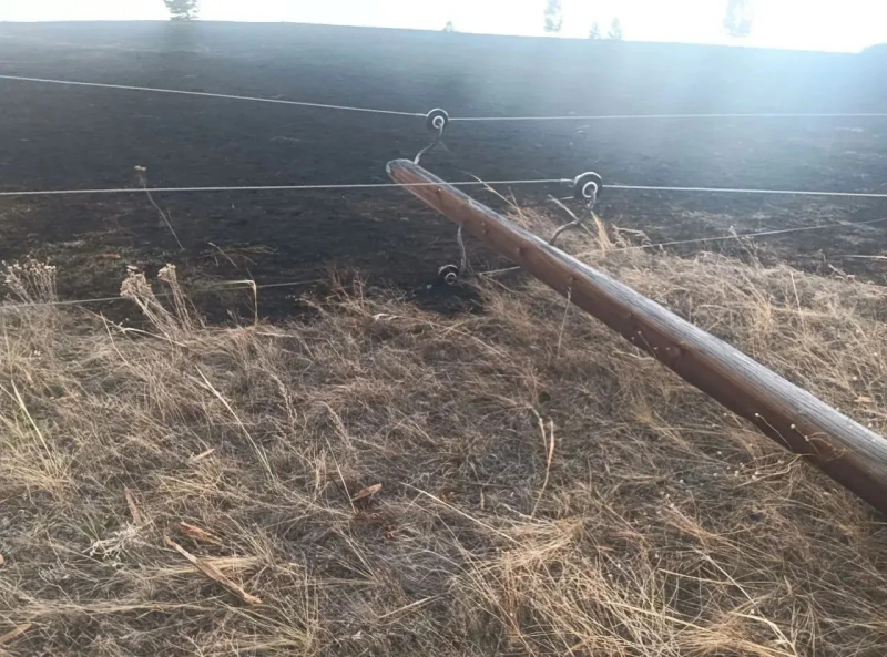 Из-за упавшей электроопоры загорелась сухая трава