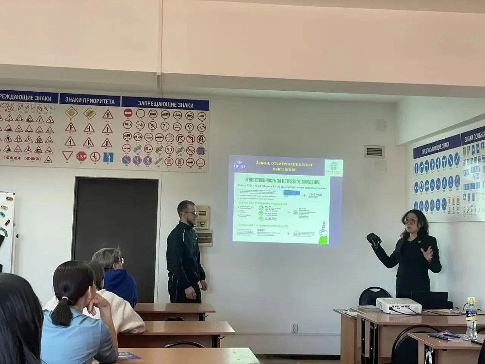«Увидеть мир глазами пьяного, оставаясь трезвым»: в Улан-Удэ для учеников автошколы «Олимп» провели необычное занятие. В рамках проекта «Автотрезвость» с будущими водителями побеседовали инспектор ГИБДД по пропаганде безопасности дорожного движения и специалист Республиканского наркологического диспансера Анна Босхолова.