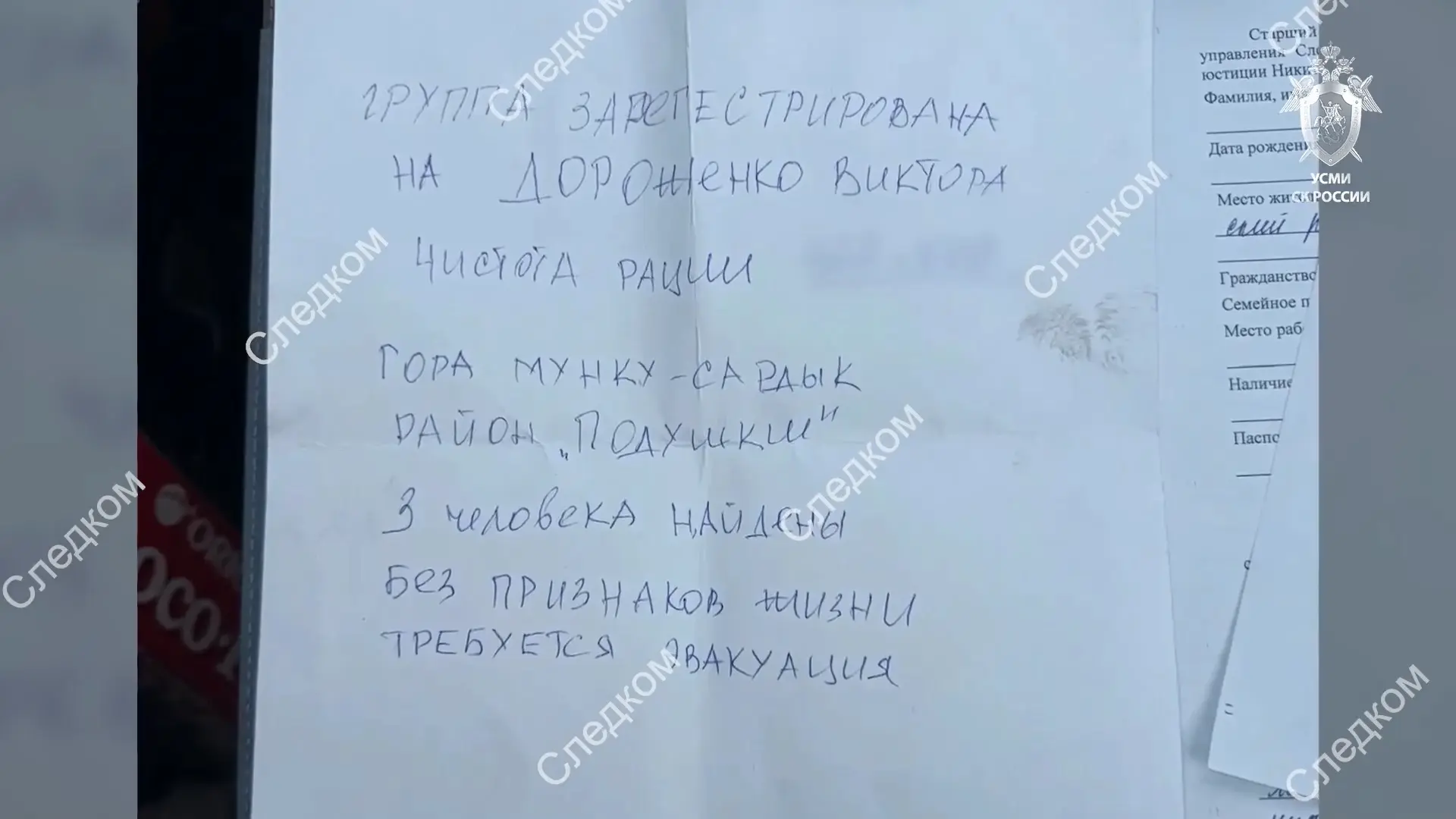 Однако в ночь на 21 апреля часть туристов вышла к трассе у подножия гор. В придорожном кафе красноярцы оставили записку, в которой сообщили о гибели во время спуска трех человек. После они поднялись обратно к месту происшествия. Владелец кафе утром передал сообщение, после чего к туристам выдвинулся отряд спасателей.