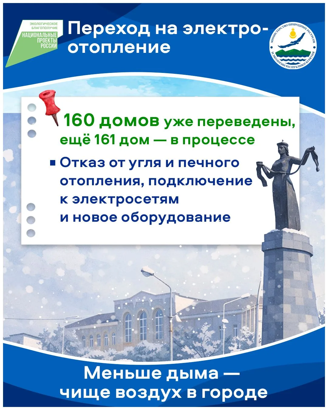 Мероприятия по переводу частных домов на электроотопление проходят в Улан-Удэ и Гусиноозерске в рамках федерального проекта «Чистый воздух» национального проекта «Экологическое благополучие».