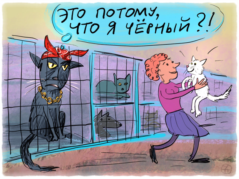 «Черных животных никто не хочет брать. Они приносят несчастье. Они некрасивые, обычные, невзрачные, их просто не замечают. Даже если ты самый ласковый, самый послушный – все равно никому не нужен. А если еще и девочка, ухх... Считай, что ты вообще не уедешь домой. Справедливо ли это? Нет. Но пока факт остается фактом», - пишут сотрудники фонда на официальной странице фонда во «ВКонтакте».