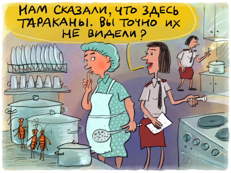 Это грустная история о том, как в школьной столовой искали тараканов и не нашли. То ли плохо искали, то ли тараканы обученные и сразу попрятались. А может быть и такое, что в столовой действительно отсутствуют эти питательные деликатесы восточной кухни.