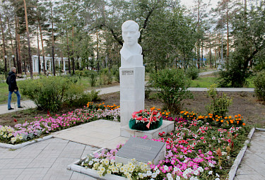 Сквер имени Пушкина в Улан-Удэ. Вход с названием сквера Апрель 2025 года